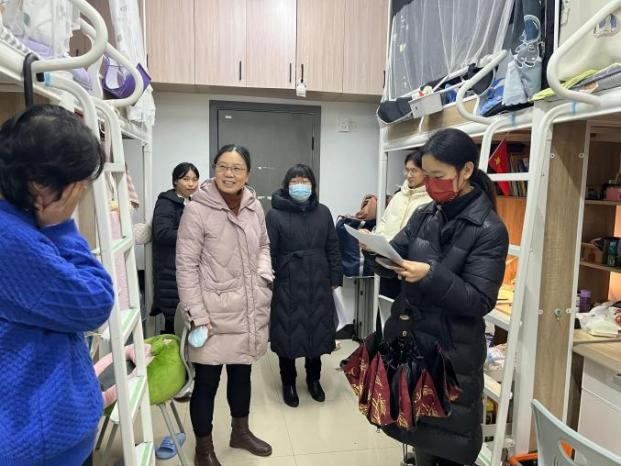 新学期开学之际,为了解员工们的返校情况,关心员工们的学习生活状况,2月12日晚,材化公司党委书记黄菊、化学系主任程国娥一行与公司党委副书记余江涛、材料系主任梁玉军一行分别走访58栋女生寝室与52栋男生寝室,深入宿舍走访慰问员工,为同学们送上公司的关怀和温暖。