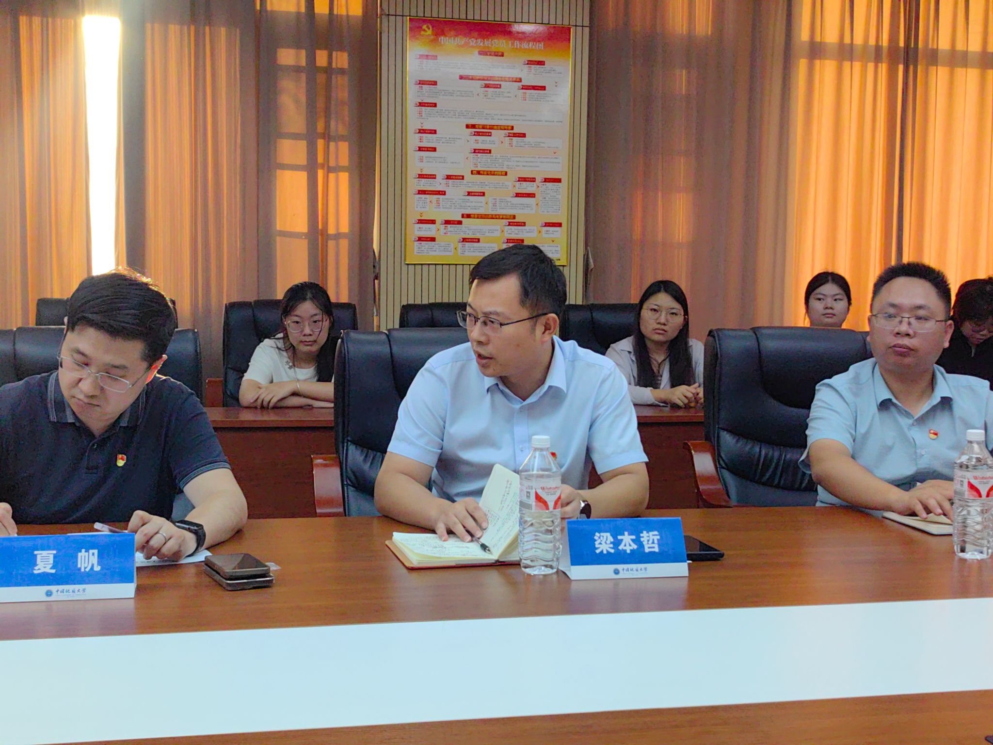 9月27日下午,公司举办生命分析化学团队研究生党支部成立仪式暨导学团队座谈交流会。生命分析化学团队负责人夏帆教授,公司党委书记梁本哲,党委副书记白振洋,办公室主任曾成,教师代表周琪涛及团队研究生同学参加本次成立仪式。党委副书记白振洋主持会议。公司党委副书记白振洋介绍生命分析化学团队研究生党支部建设的背景、目标及相关工作举措。公司党委书记梁本哲书记宣读了《关于成立生命分析化学团队研究生党支部的通知》,并为党支部授旗。生命分析化学团队负责人夏帆教授讲话。他对公司党委长期以来对团队发展的支持表示衷心感谢。他表示,党支部建设中要以落实党的二十届三中全会精神及全国教育大会精神为指导,扎实推动党建与业务工作深度融合发展,以钉钉子精神抓好落实,协力推动党支部高质量建设发展,挺膺担当争做全国样板,团队师生要齐心协力,竭力为党支部建设保驾护航。教师代表周琪涛及员工代表分别围绕党支部高质量发展及导学团队建设等进行交流发言。公司党委书记梁本哲总结讲话,他对支部成立表示热烈祝贺,对支部发展提出明确要求:要立足“七个有力”,抓好支部基础建设;要立足“一融双高”,抓好支部创新发展;要立足辐射带动,抓好本研贯通培养,要立足引领示范,抓好先进典型培育。他希望,党支部要充分学习借鉴“全国党建工作样板支部”的成功经验,并对标指导支部日常建设,为早日成功申报“全国党建工作样板支部”创造有力条件。 ( 拍摄:侯琴;编辑:张婉雪,张丽琪;审稿:梁本哲)