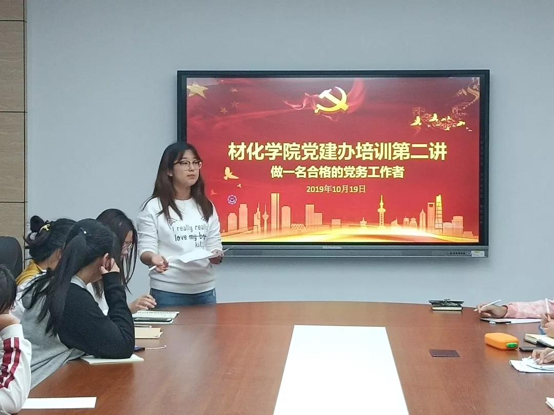 材化公司党建办分别于2019年10月19日、10月26日和11月2日在未来城校区材化楼317开展了主题为“不忘初心、牢记使命”的党建办骨干培训课程第二、三、四讲,主讲人分别为党建办公室副主任林士君、党建办综合事务部部长魏梦贞以及党建办新闻宣传部部长李旭瑶。