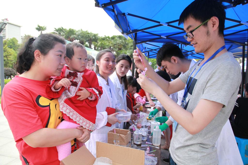 在“感温幻彩魔杯”的展演中,只见展演队员把热水倒进杯中,杯子外层的图案缓缓变换了颜色,将杯中换成冰水,图案又恢复了原来的颜色。展演队员鲍茜介绍,他们采用了一种微胶囊化的有机可逆感温变色材料,制备成涂料之后涂覆在马克杯上,当杯子里水的温度变化时,就会导致变色材料的物理化学结构发生变化,进而导致其光谱性质的转变,从而在宏观上体现出颜色的变化。