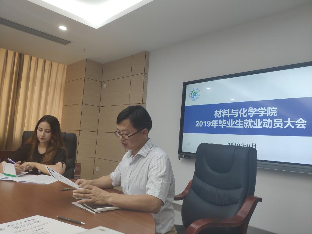 (通讯员:高虞涛)9月27日12:30,2020届本科毕业生就业动员大会在材化楼317会议室隆重举行。材料与化学公司党委副书记余江涛、毕业年级辅导员吴迪老师参加本次就业动员大会。大会由吴迪老师主持。