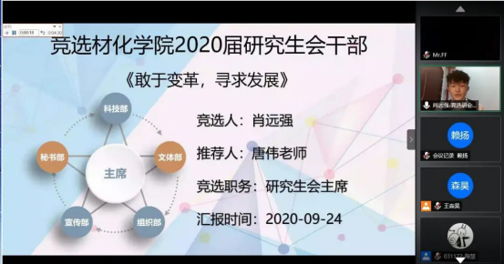 随后,在2020届员工组织主要负责人遴选答辩过程中,董岳以“员工会改革进行时,回归服务同学宗旨”为主题,从员工会如何更好地服务同学入手,阐述了对员工组织的管理和规划。