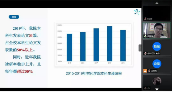 首先,2019届员工会主席团成员陶慧宣读出席人名单,接着,全体成员齐唱国歌。随后,员工会主席团成员王森昊进行了工作报告,他在报告中总结了2019年材化公司员工工作的成果以及存在的不足;2019届研究生会主席韩聪以“善研乐活创精彩,奋进科研共同体”为主题阐述了2019年研究生会的工作情况。