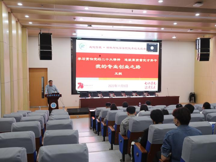 11月5日下午,公司2006届优秀员工王懿学长从自身经历讲起,结合自己的工作经验对大家进行了专业指导,强调了知识在专业发展中的重要性,有了知识的根基,才能步履铿锵地行走在创业的道路上。王懿学长还鼓励大家共同创业,寻求企业合作,做富有智慧的创业人。同时王懿学长对同学们的提问也进行了细致的解答,鼓励更多的年轻人加入材料领域,共同解决国家发展中遇到的难题。
