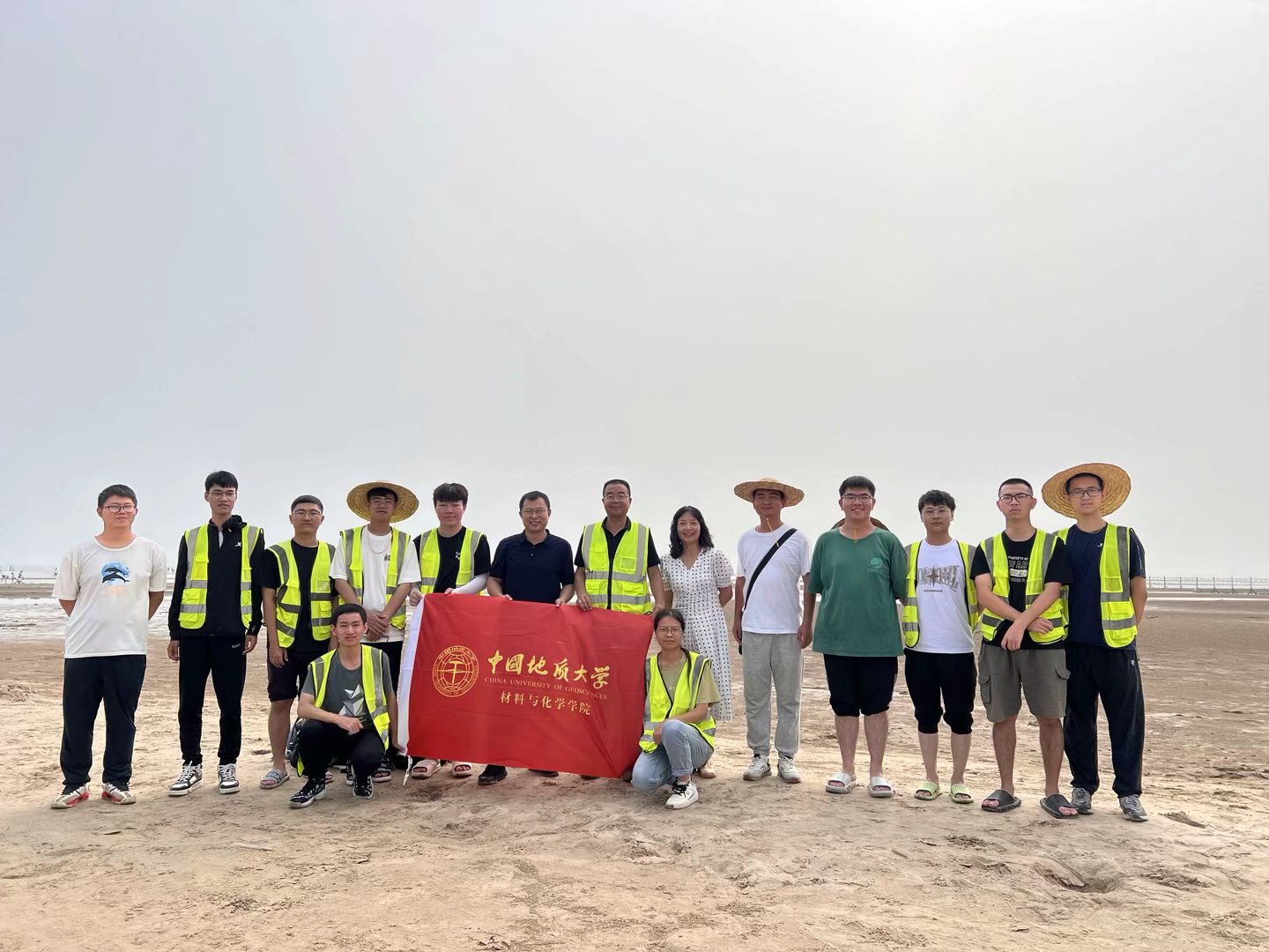 8月20日,梁本哲书记和实习师生一起同走新河口野外实习路线。带队专业教师葛文教授介绍本次实习安排以及整体进展,现场讲解新河口地质路线知识点。随后,梁本哲书记与实习师生共同观察泥沙质海岸沉积物特征、波浪运动特征与形态以及生物分布特征,并与实习师生交流相关实习问题,翻阅同学们的野外记录簿。