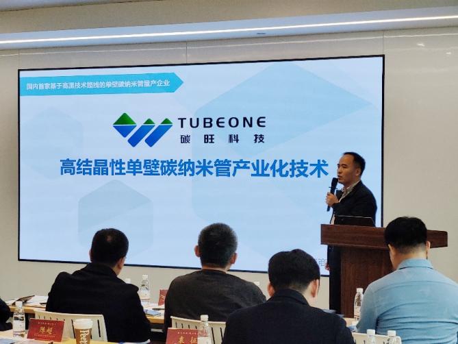 材化公司教授杨明以“液体有机储氢技术及商业化应用”为题,地大材化员工、航天八院上海空间电源研究所固态电池课题组组长吴勇民以“高比能固态电池体系的建立应用与未来展望”为题,地大材化员工、上海交通大学教授苏言杰以“高结晶性单壁碳纳米管产业化”为题,上海隽赐投资管理有限公司法人张利英以“先进碳基复合材料超级耐材领军企业”为题,中南大学员工、苏州博萃循环科技有限公司营销总监杨家林以“双碳目标下的锂电池回收全套解决方案”为题,分别作项目路演报告,获得与会10多家投资机构的青睐。