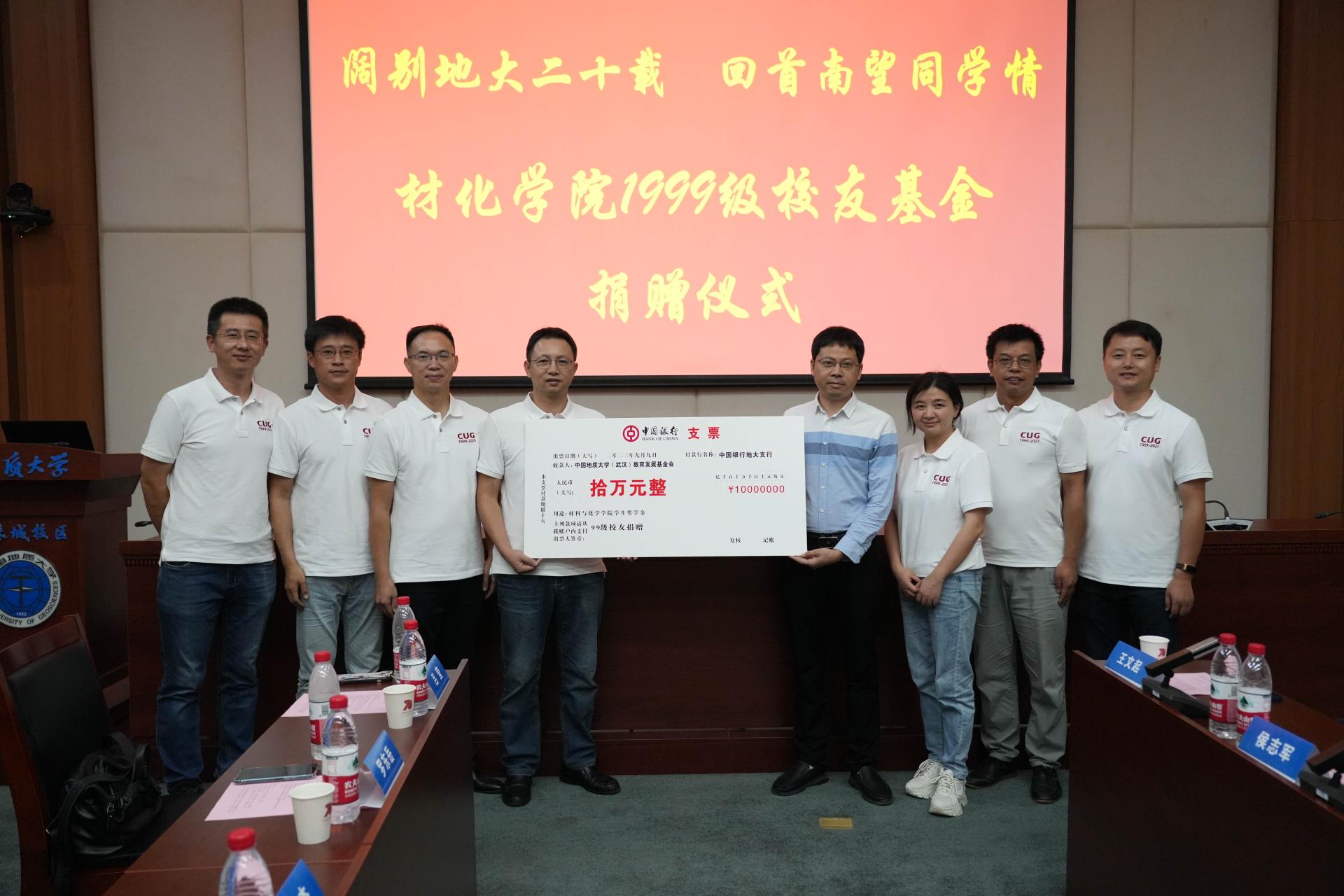 座谈会期间,罗东岳员工代表99级全体员工为公司捐赠十万元,设立“材化玖玖奖学奖教金”,用以奖励材化公司优秀师生。