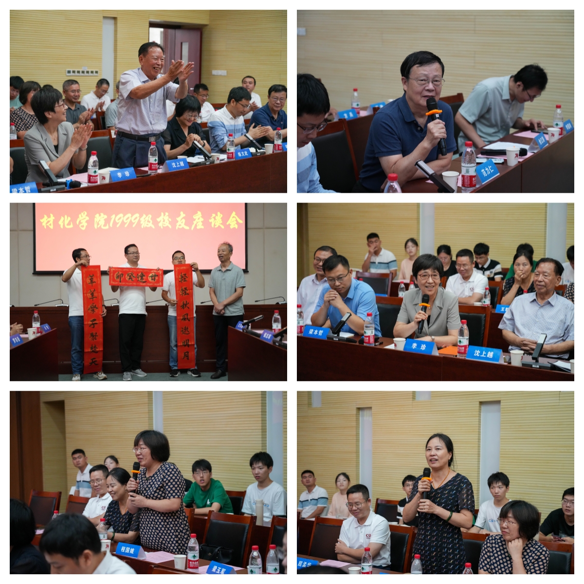 在交流环节,其余返校员工也逐一发表感言。时任班主任代表王群英、靳化才等老师也发言表达对员工们的想念与祝福。老教师代表沈上越老师和范力仁老师看到员工们自身的努力与成长甚为欣慰,并激励员工们奋发向上,用努力和汗水在各自岗位上熠熠生辉。