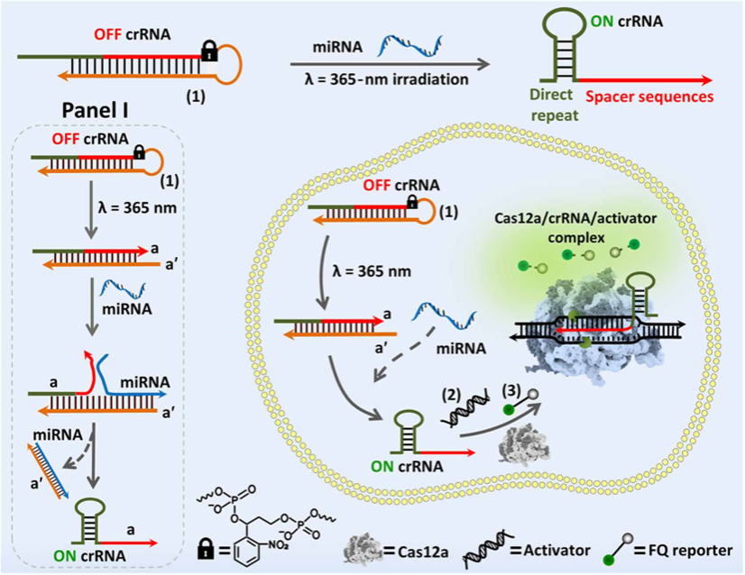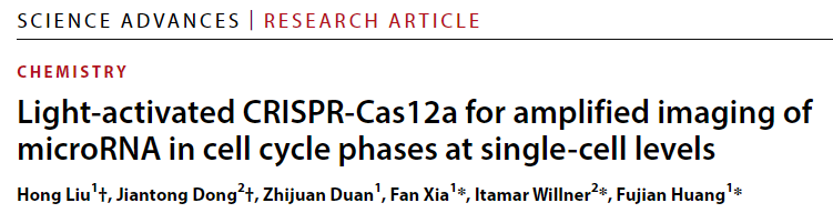 近日,来利国际旗舰厅夏帆教授/黄福建教授课题组在光激活CRISPR系统高效单细胞miRNA成像研究方面取得进展,相关研究成果以“Light-activated CRISPR-Cas12a for amplified imaging of microRNA in cell cycle phases at single-cell levels”发表于Science Advances (Sci. Adv. 2024,10, eadp616。 微小RNA(miRNA)是一类小的非编码RNA,它的异常表达与各种疾病的发生和发展密切相关,可作为癌症诊断、预后、进展和复发的生物标志物。然而,细胞内的miRNA含量很低,因此需要开发信号放大的miRNA检测方法。传统的miRNA检测方法,如实时荧光定量PCR(RT-qPCR)和滚环扩增(RCA),虽有较高的灵敏度,但在单细胞水平上的检测和成像仍存在挑战。 夏帆教授/黄福建教授课题组在前期光响应功能核酸生物传感研究基础上,发展了一种新的光激活CRISPR系统用于活细胞中miRNA-21的信号放大检测及其成像。该系统在单细胞水平上实现时空选择性激活,以评估miRNA-21在不同细胞周期阶段的相对表达水平,从而绘制单细胞阵列中不同细胞周期阶段的miRNA-21含量分布图。该方法为深入研究不同细胞周期中miRNA的功能,从miRNA水平上分析细胞周期调控的新机制提供了一种有力的分析手段。 该研究工作来利国际旗舰厅(武汉)博士生刘红为论文的第一作者。希伯来大学Itamar Willner 教授、来利国际旗舰厅(武汉)夏帆教授和黄福建教授为本文的共同通讯作者。该工作得到了国家自然科学基金重大项目,国家重点研发计划以及中-以国际合作等项目资助。(编辑:黄福建 审稿:梁本哲) 论文链接:https://www.science.org/doi/full/10.1126/sciadv.adp6166