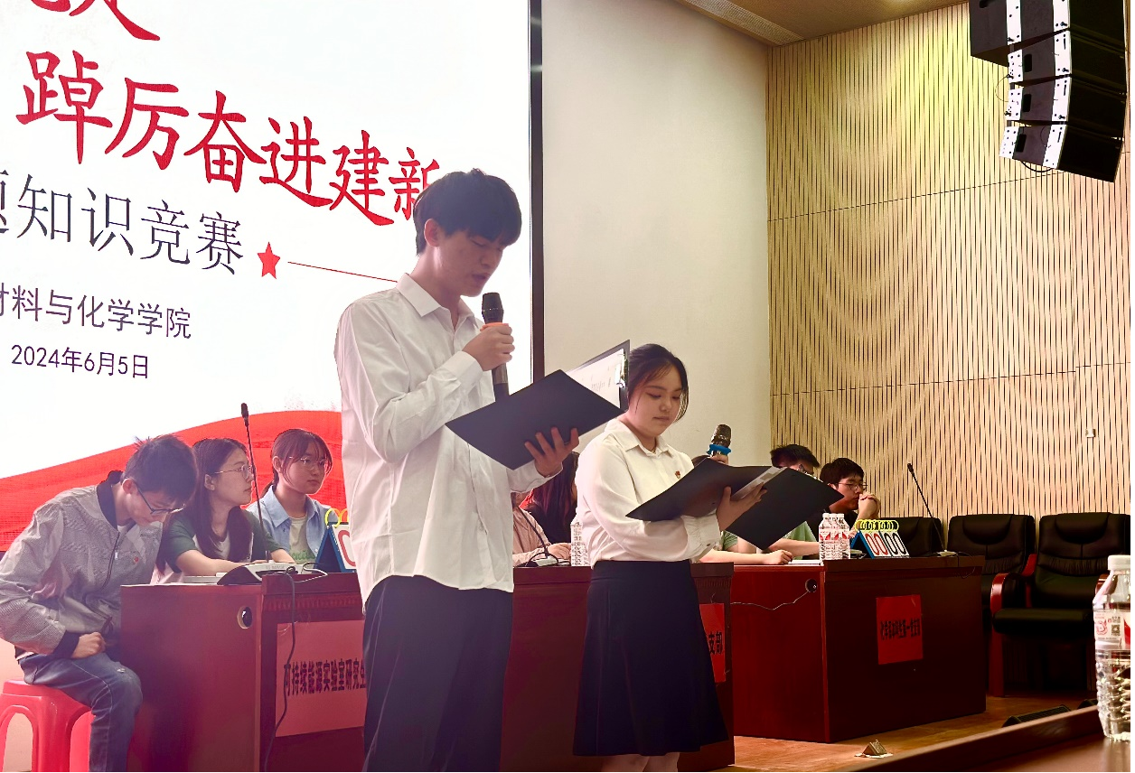 本次知识竞赛党史及党纪的相关知识为考察内容,经过初赛笔试预选,化学系本科生第一党支部等六支代表队脱颖而出进入决赛。决赛分必答题、抢答题、声临其境、红色故事分享以及红歌接唱四个环节。