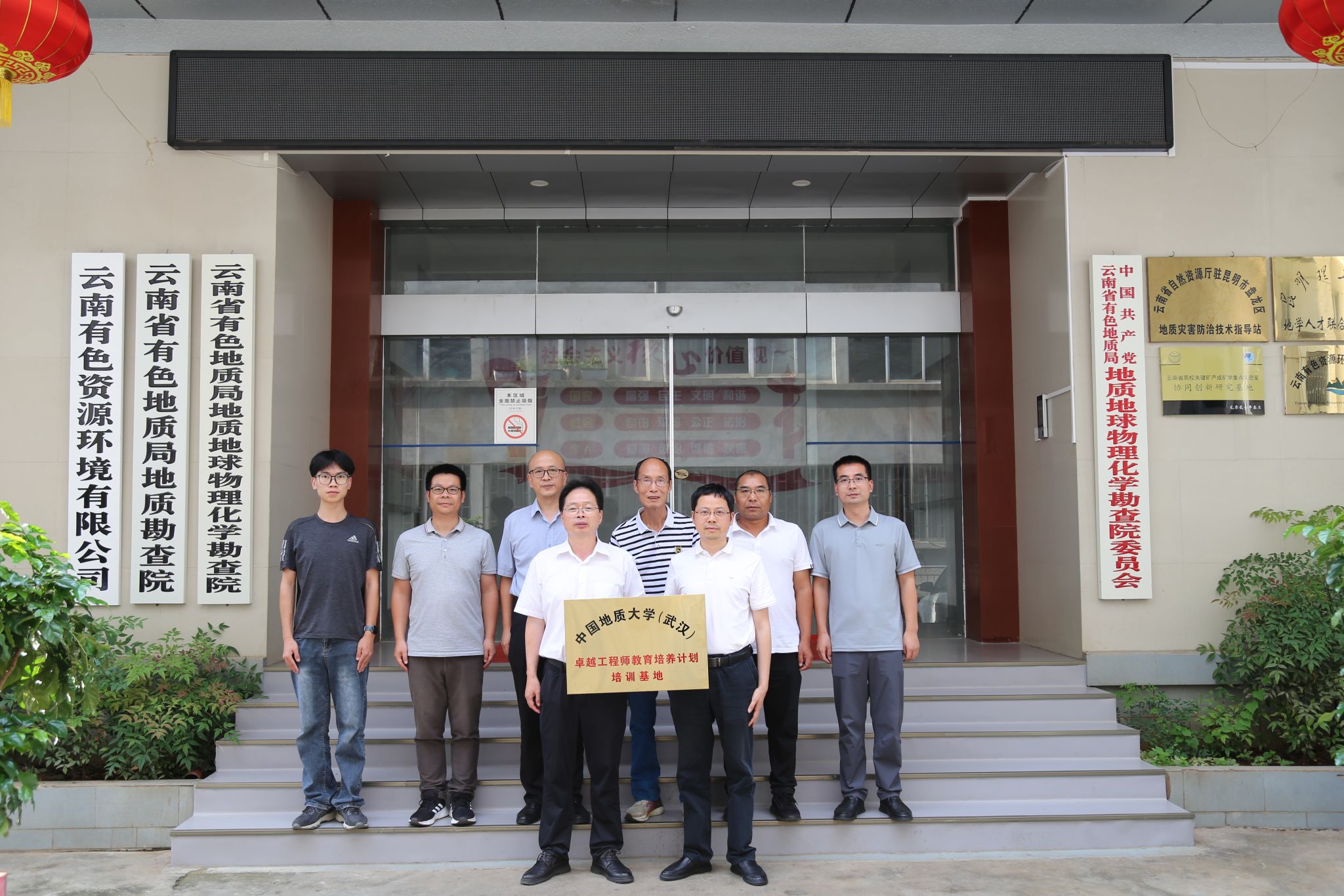 为深化产教融合,拓展实践育人平台,8月4日,公司经理胡兆初、教师代表鲍征宇、鲁立强、田欢和员工代表黄旭升赴云南省有色地质局地质地球物理化学勘查院(以下简称“物勘院”)开展专题调研交流,并举行共建“本科卓越工程师培养计划培训基地”挂牌仪式。
