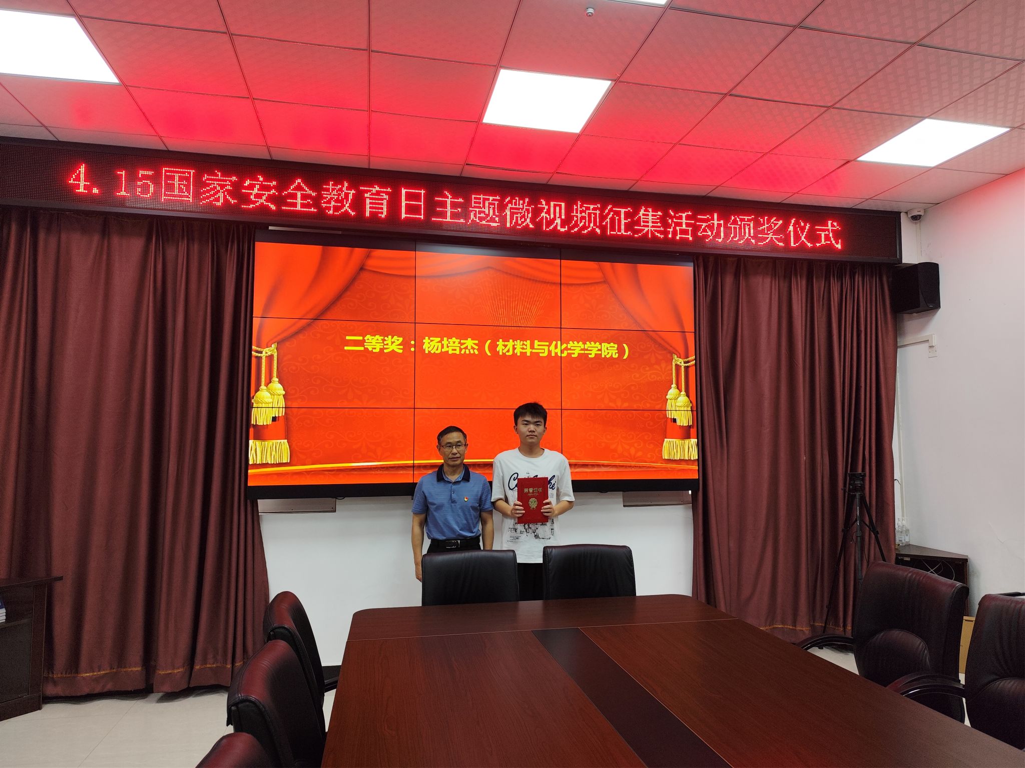 6月27日下午,公司4.15全民国家安全教育日微视频征集活动颁奖仪式在安全保卫部举行。由公司刘浴辉和张丽琪老师共同指导、2023级研究生杨培杰团队提交的主题微视频《实验室安全》获评校级二等奖。 2024年是习近平总书记提出总体国家安全观10周年,4月15日是第九个全民国家安全教育日。增强研究生实验室安全意识是践行总体国家安全观的重要体现。公司积极响应公司组织的4.15全民国家安全教育日微视频征集活动,在刘浴辉和张丽琪两位老师的共同指导下,公司2023级研究生杨培杰团队,从剧本的创作、演员的确定、场景的设计、拍摄和剪辑等方面通力合作,克服了时间短、任务重的困难,高质量完成并提交了主题微视频《实验室安全》。本作品在评选过程中,得到了评委们的一致好评,最终获得校级二等奖,这也是本年度全校最好成绩。 本次微视频制作的全过程得到了公司学工和安全巡查工作组的大力支持,教学实验中心为拍摄工作提供了平台保障。通过本次活动,在师生中掀起了一股学习总体国家安全观的热潮,师生的安全意识得到进一步加强,主动参与安全知识学习的积极性获得了进一步提升。