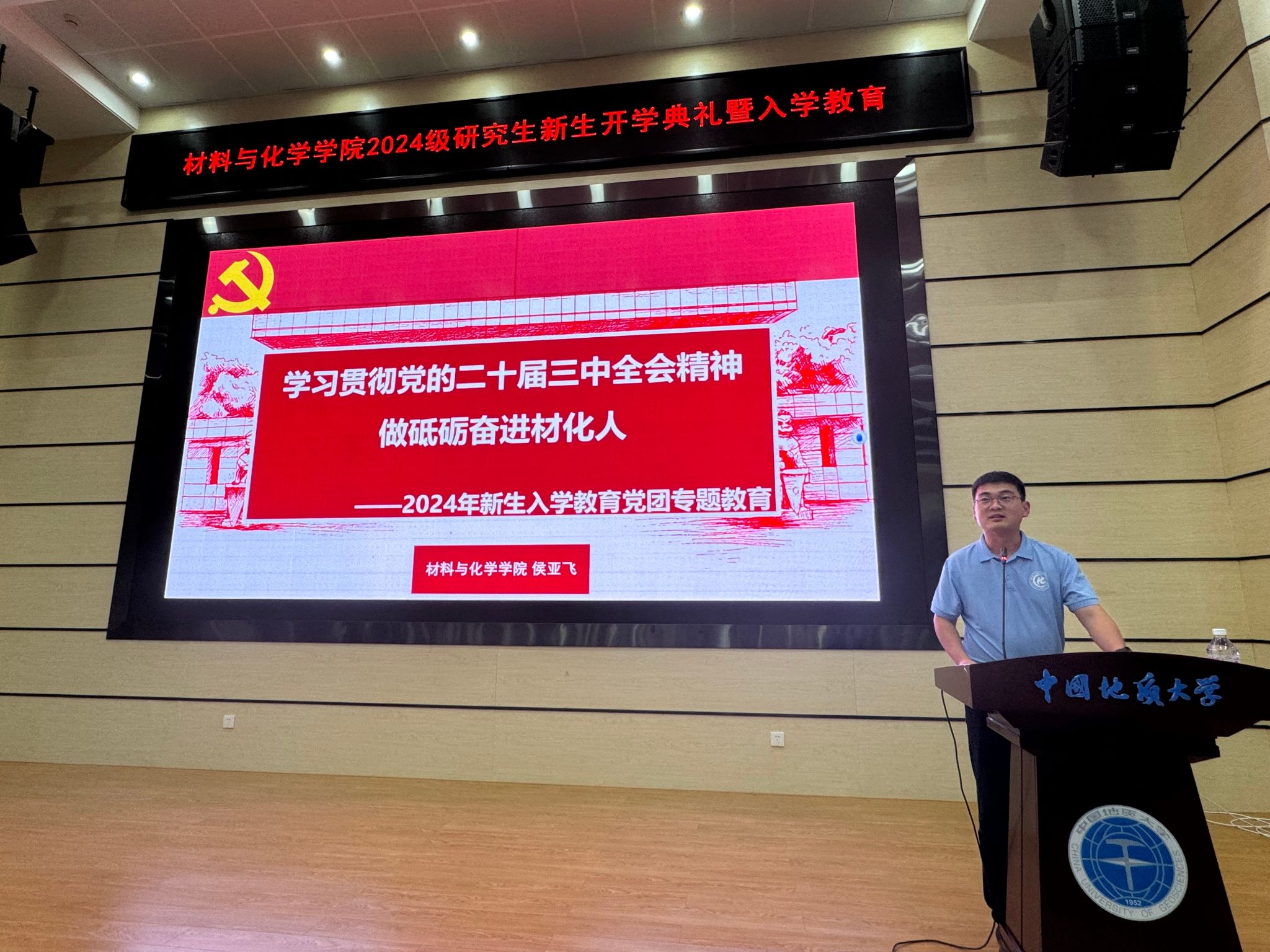 公司党委书记梁本哲总结发言,并讲开学第一课。他以“以德修身立大志,精业笃行攀高峰,做新时代挺膺担当材化人”为主题,从六个方面介绍了公司的发展历程、建设成效及特色优势,他勉励新生:一是要为国攀登,争做地大精神“传承者”;二是要重新起跑,争做全新赛道“先行者”;三是要追求卓越,争做矢志创新“排头兵”;四是要坚守底线,争做学术道德“捍卫者”;五是要挺膺担当,争做科技报国“践行者”;六是要奉献社会,争做科教惠民“志愿者”。他希望全体导师身正为范,争做立德树人“大先生”。他希望全体研究生以材化为基石,将论文写在祖国大地上,成就精彩人生。