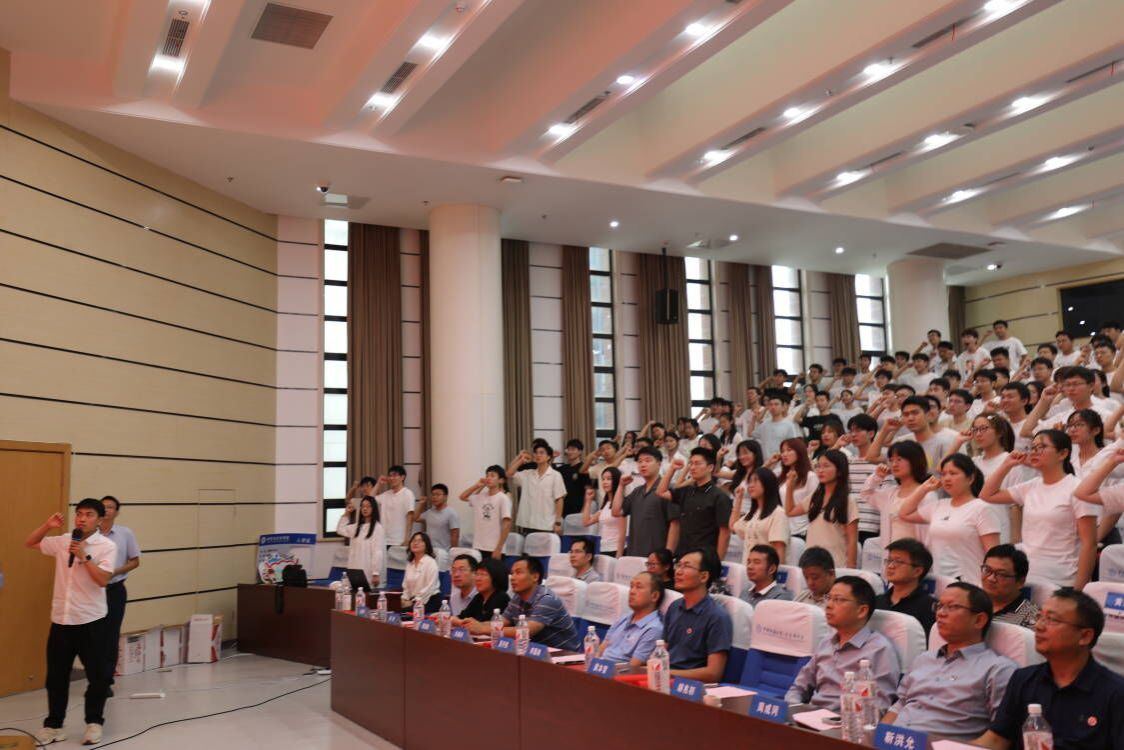 全体研究生新生进行学术道德诚信宣誓,2024级博士研究生徐仕军领誓。