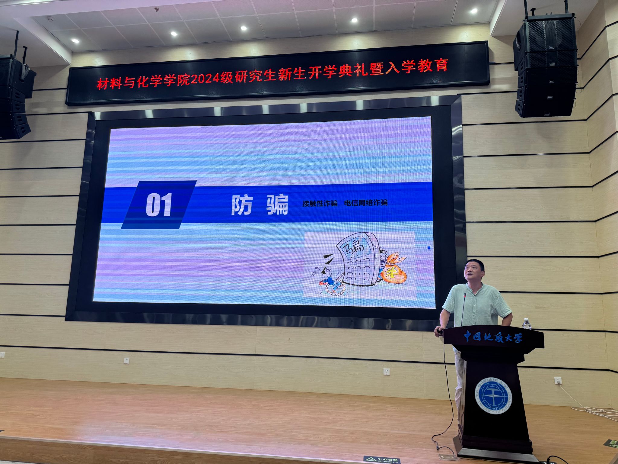 在校生代表、2022级博士研究生车华超发言。他回顾了自己在地大学习生活十年的感悟,他希望同学们在研究生学习中能够正确面对不确定性,沉住气慢慢来,大胆质疑,细心求证,将科研成果有效融入国民经济和社会发展中,把论文写在国家大地上,争做新时代有为地大材化人。