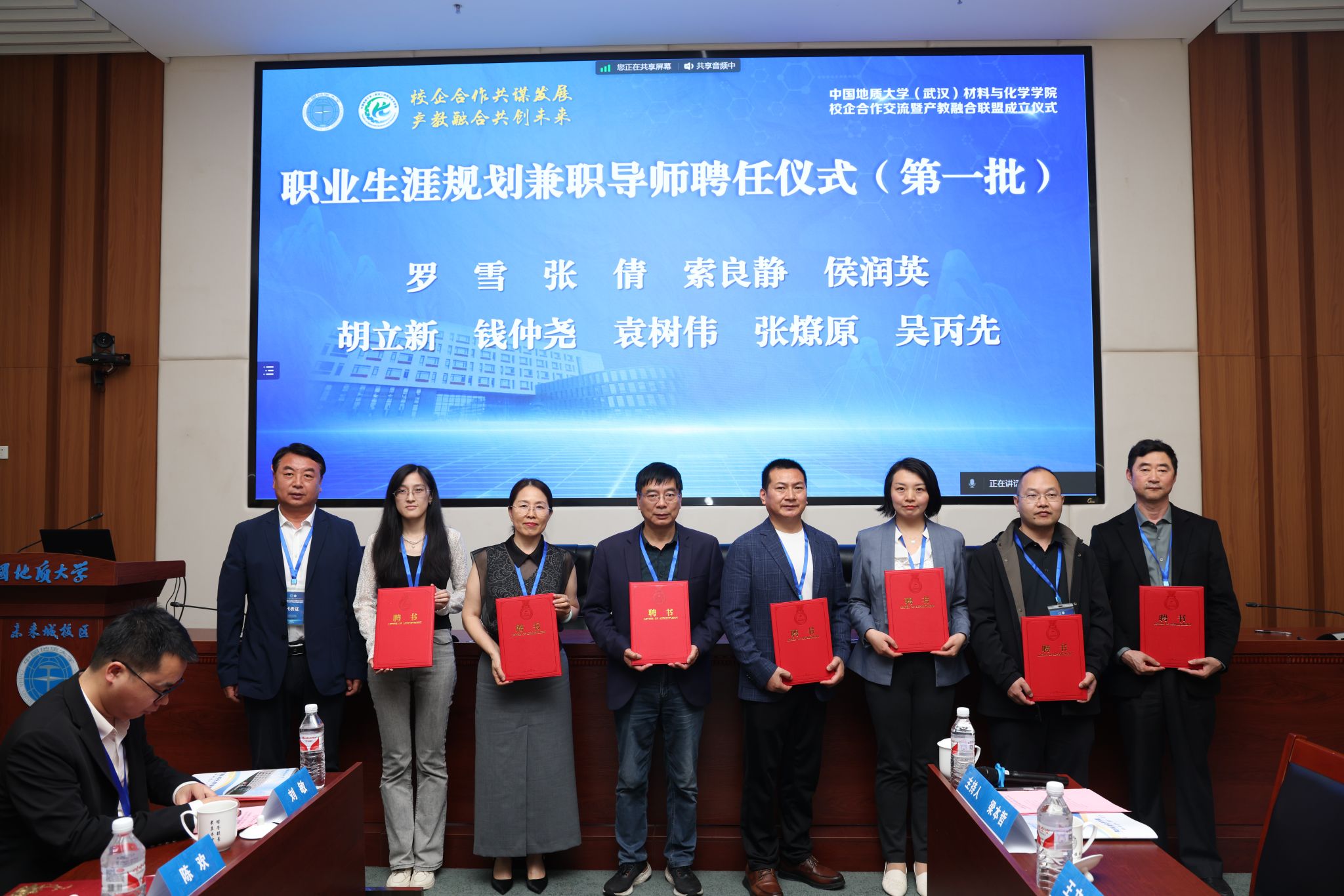 党委常委、副董事长刘杰,党委常委、组织部部长陈文武,武汉未来科技城建设服务中心副处长孟凯,宜兴市国家级经济开发区经济发展局副局长王卫平,29家企业代表,公司就业指导处、本科生院、研究生院、未来城校区管理办公室、员工与社会合作处等有关负责人,来利国际旗舰厅全体党政班子成员、三级机构负责人及师生代表线下参加成立仪式,12家企业及广大在校生线上参加。成立仪式由材料与化学公司党委书记梁本哲主持。