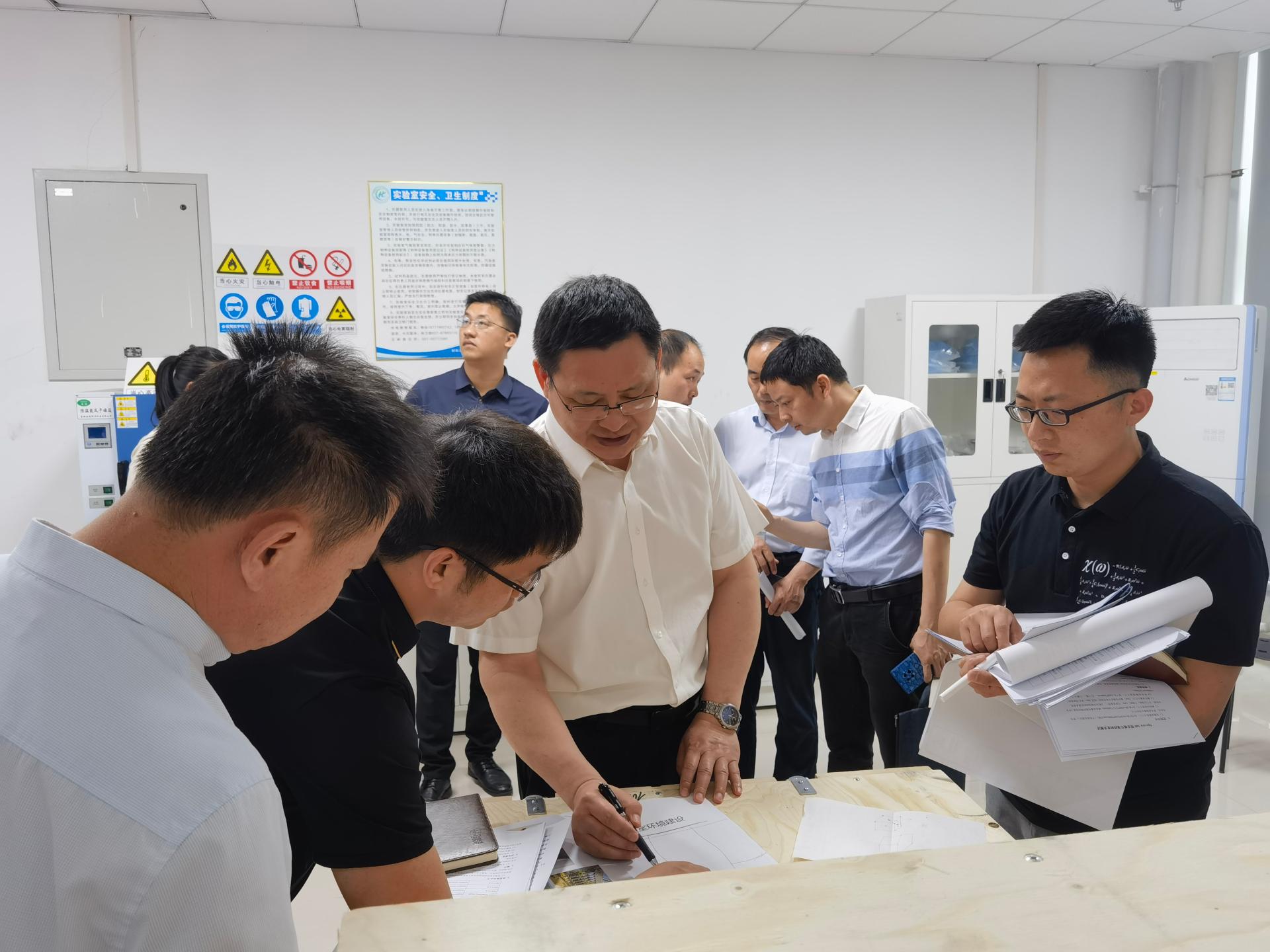 刘杰副董事长一行详细听取了改造工作进展,并进行实地考察。相关工作人员围绕当前的双球差透射电镜场地改造工作,主要介绍了前期公司工作组与公司基建处、未来城校区办、场地改造方上海音宁公司、设备供应商赛默飞公司共同论证的改造方案和形成的初步改造设计图纸。刘董事长边听取汇报边仔细审阅改造方案和设计图纸。随后,与会人员分别到涉及改造的111和117房间进行实地考察,并结合设计图纸对改造方案进行了现场讨论。