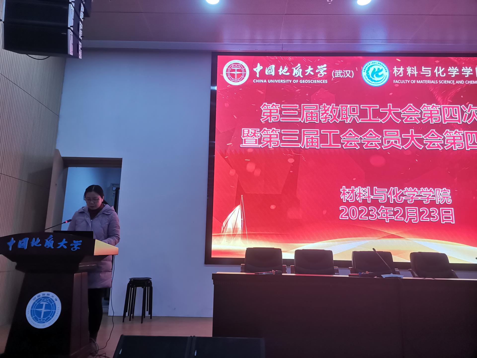 2023年2月23日下午,材化公司第三届教职工大会第四次会议暨第三届工会会员大会第四次会议在未来城校区科教五110会议室隆重召开。大会在雄壮有力的国歌声中开始。材化公司副书记余江涛同志主持会议。